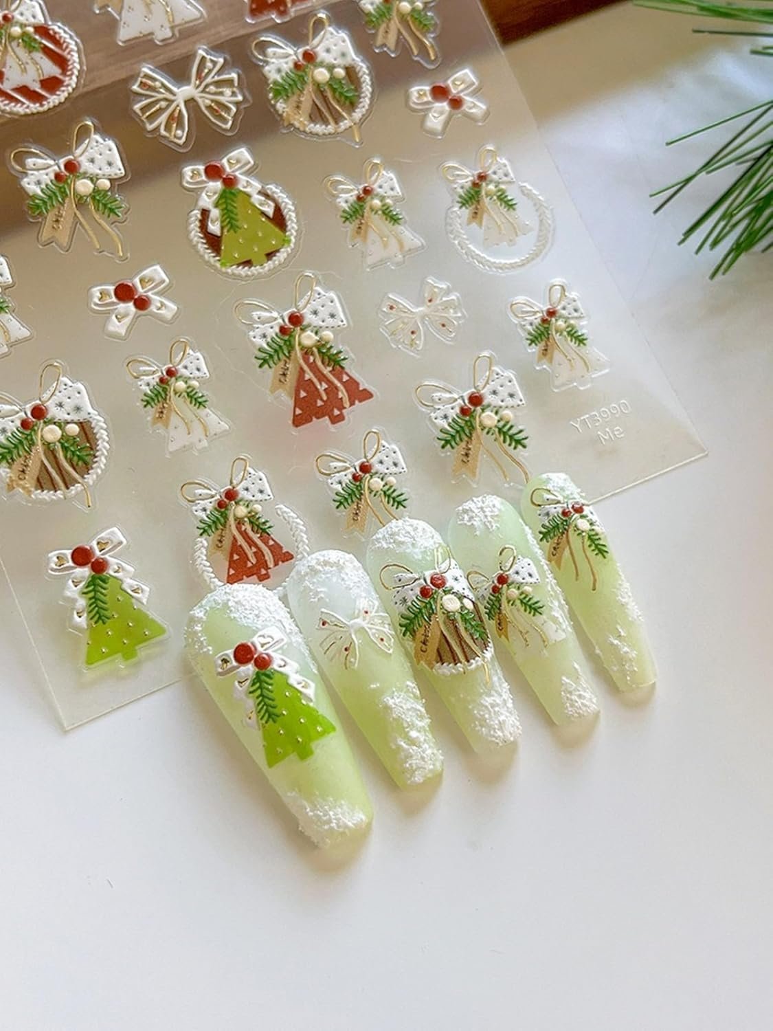 - Easy to Use: The 5D self adhesive Xmas tree design nail stickers, just peel it from the paper and stick it on you nails. Easy to use, Ideal for natural or acrylic nails. Is the best nail decoration