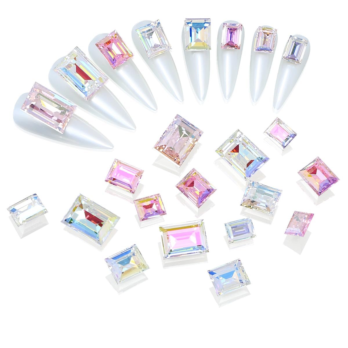 - What You Will Receive: You can receive a total of 48pcs rectangle shnape rhinstones in 3 sizes, and different sizes make it easier to achieve different nail art designs to add luster and charm to your handicrafts and make your nails even more glamorous.